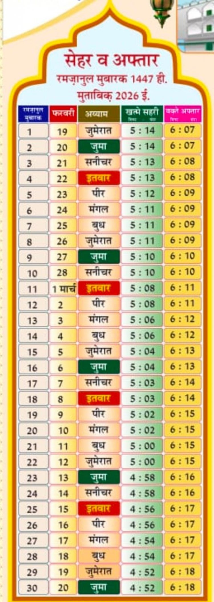 रमजान के पाक महीने में पूरे 30 दिन समाज के लोग रोजा इफ्तार से लेकर सुबह सेहरी तक इबादत करते हैं. इस दौरान सामूहिक इफ्तार और सेहरी के इंतजाम भी होते हैं. 30 रोजों के पूरे होने पर ईद का त्योहार मनाएगा.